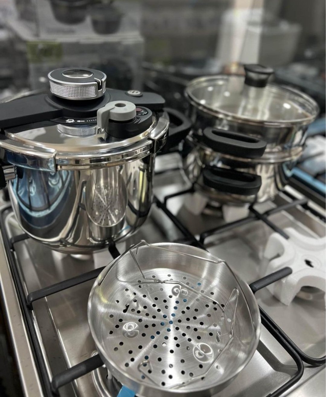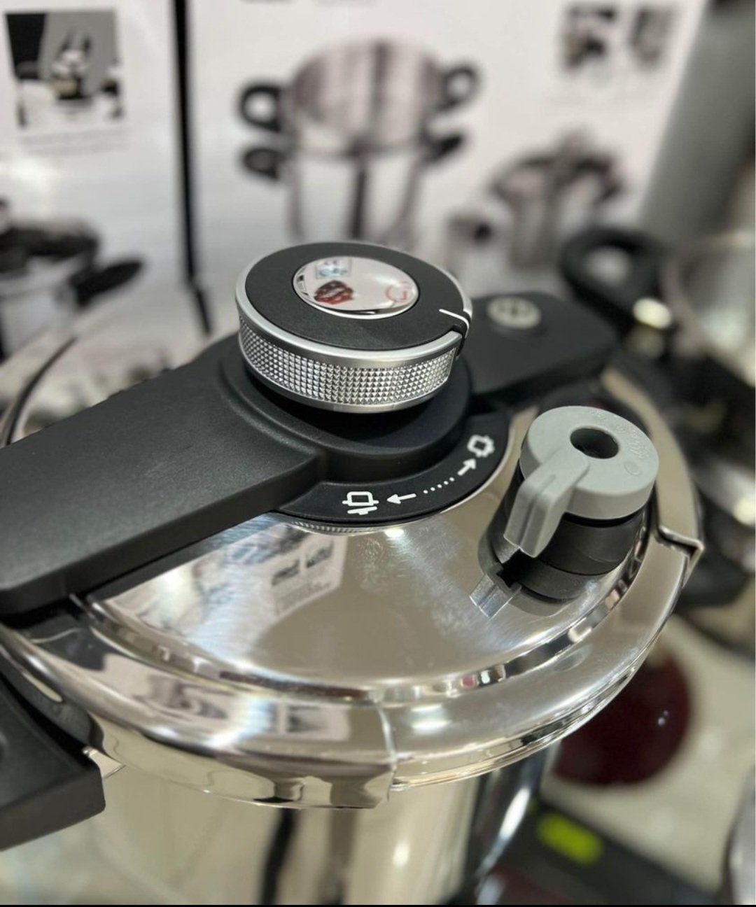 سهلة الغلق والفتح / 3 أنظمة أمان / 3 مستويات ضغط لنتائج طهي دقيقة / متوافقة مع جميع أنواع المواقد / كل قطع الغيار متوفرة (اليدين . الصفارة . الجوا)️