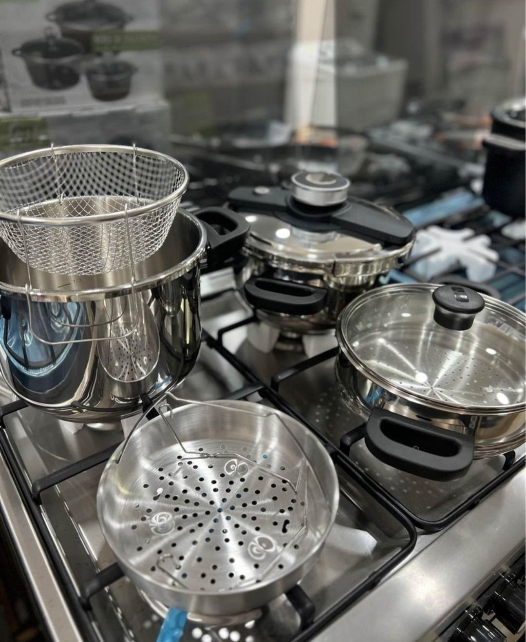 طقم كوكوط ألساب 7 قطع متعددة الإستعمال فيه كوكوطة 6 لتر و كوكوطة 4 لتر و كوسكوسيي 4 لتر و كوسكوسيي 6 لتر + شباك فريتوز + فوارة خضر ♥️ و مزودة بمقابض عازلة للحرارة 😍 ثقيلة و مصنوعة بإنوكس عالي الجودة 18/10 مڨريفيا ماللتحت و فيها 3 سنوات ضمان 💯 متوفرة أيضا بحجم كوكوطة 7لتر-4لتر
