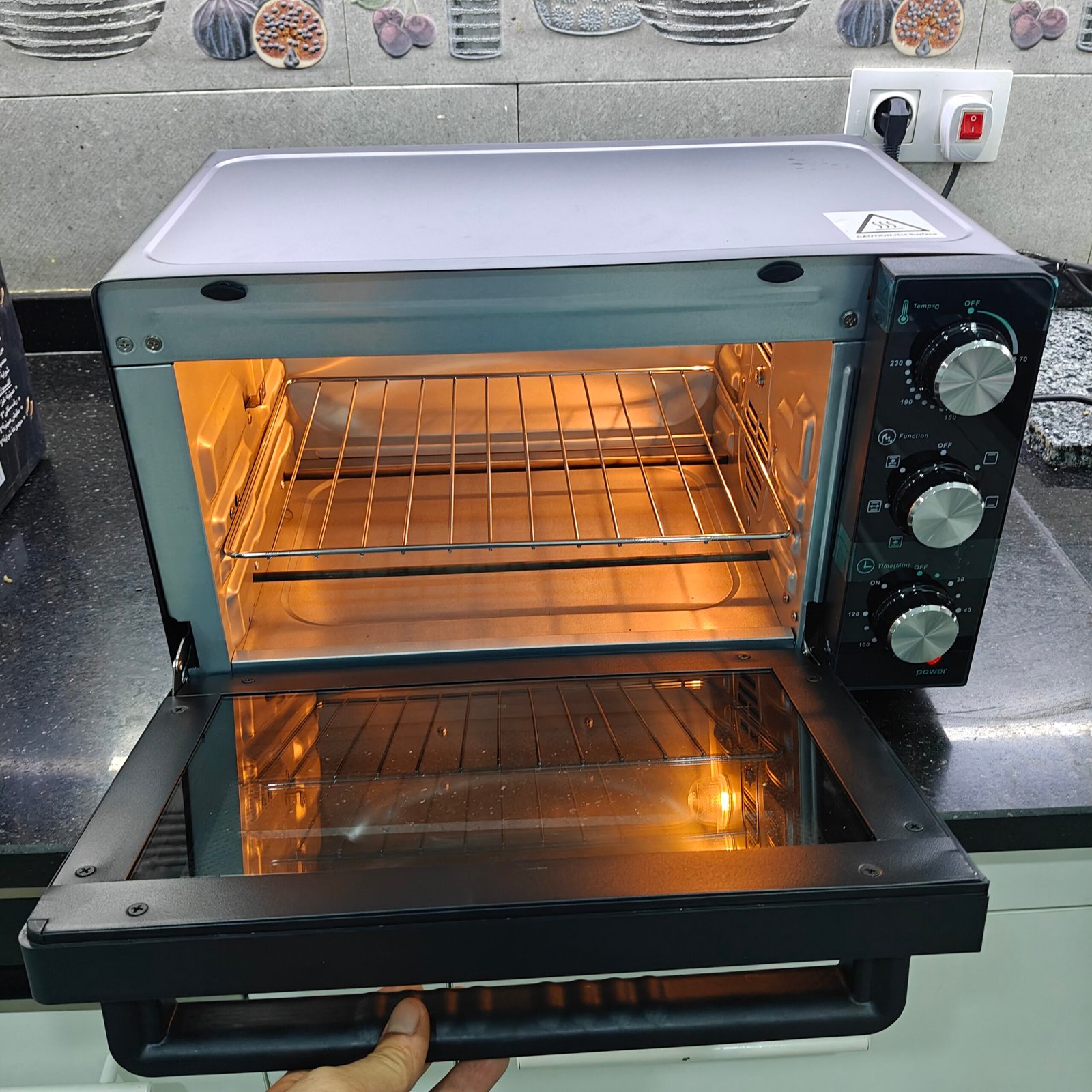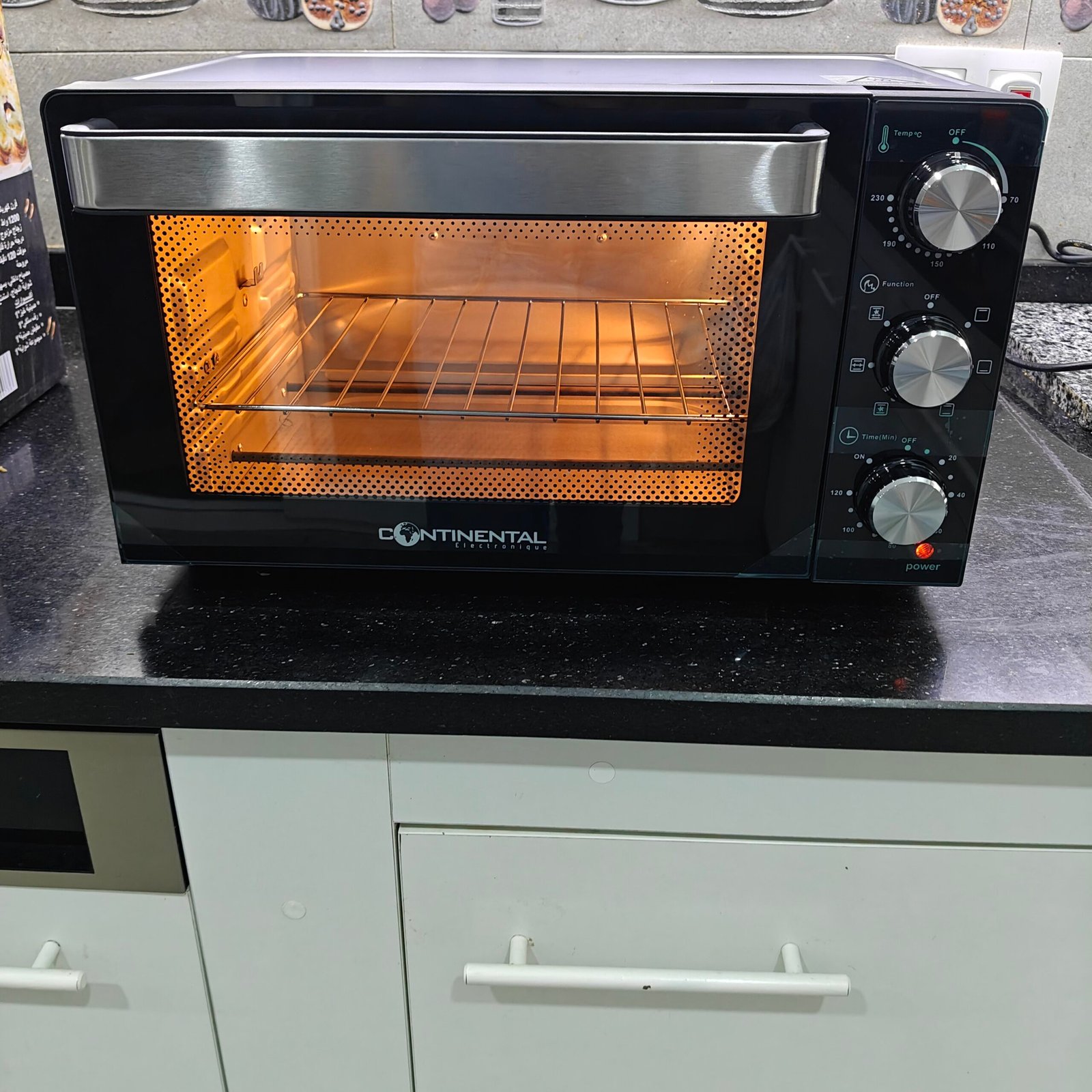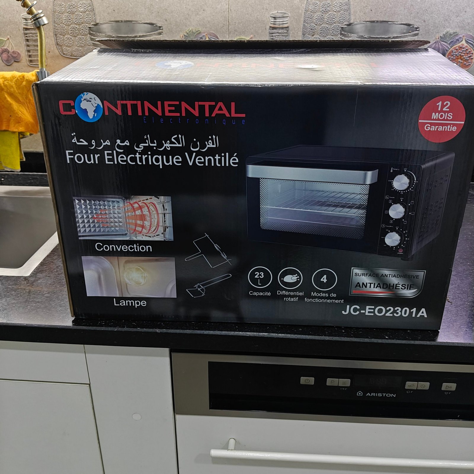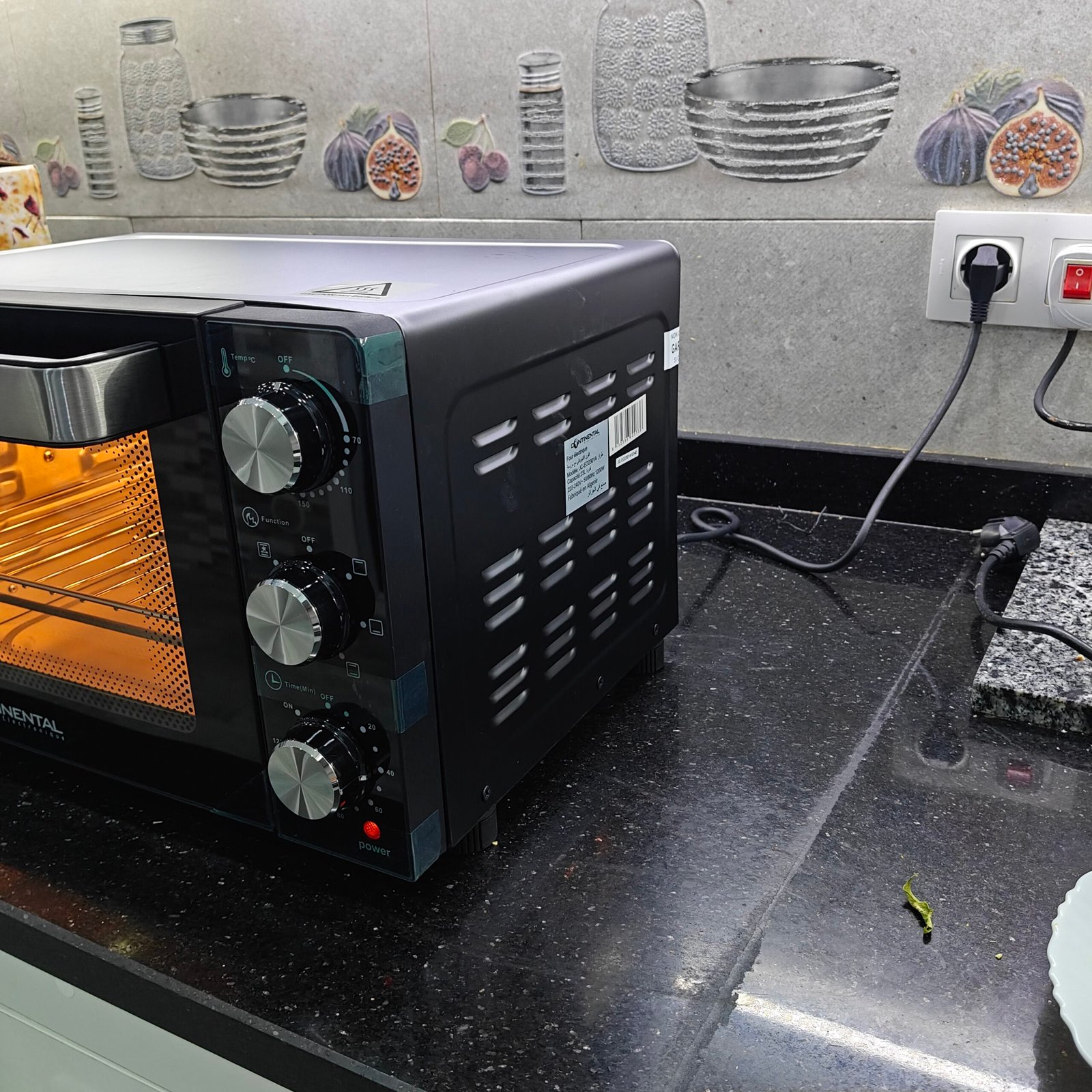 فرن كهربائي كونتيننتال حجم صغير بسعة 23 لتر، مزوّد بمروحة لتوزيع الحرارة بشكل متساوٍ، شواية دجاج، وإضاءة داخلية لمراقبة الطهي. يتميّز بسطح مضاد للالتصاق وأربعة أوضاع تشغيل لتجربة طهي مثالية وسهلة في المنزل 💯 و فيه سنة ضمان