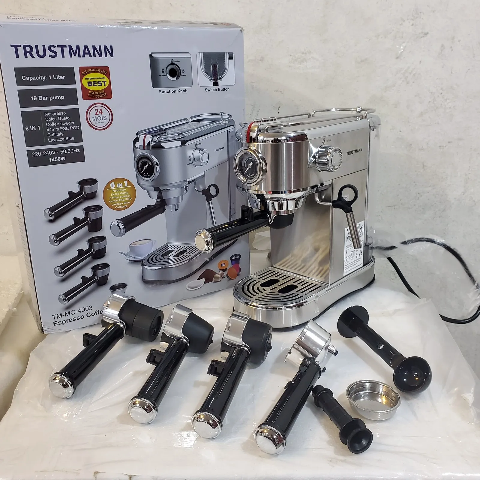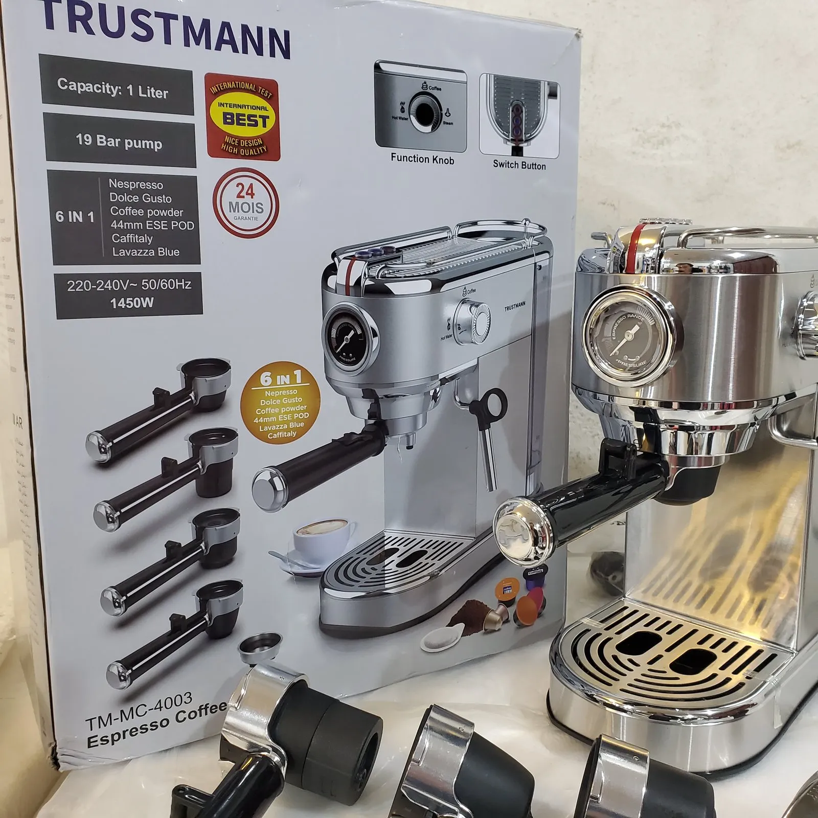 | Machine à café Espresso 6en1 TRUSTMANN Allemande – 19 Bar | Compatible avec toutes les Capsules & Café Moulu | 1 24900 د.ج |
