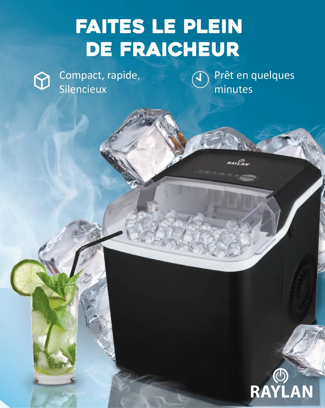 Des glaçons à la maison en un clic et seulement 6 minutes avec Raylan 🧊✨ Choisissez la taille, laissez la magie opérer ❄️ Facile, rapide et toujours prêt pour vos boissons ! 🥤 Machine haute gamme et solide