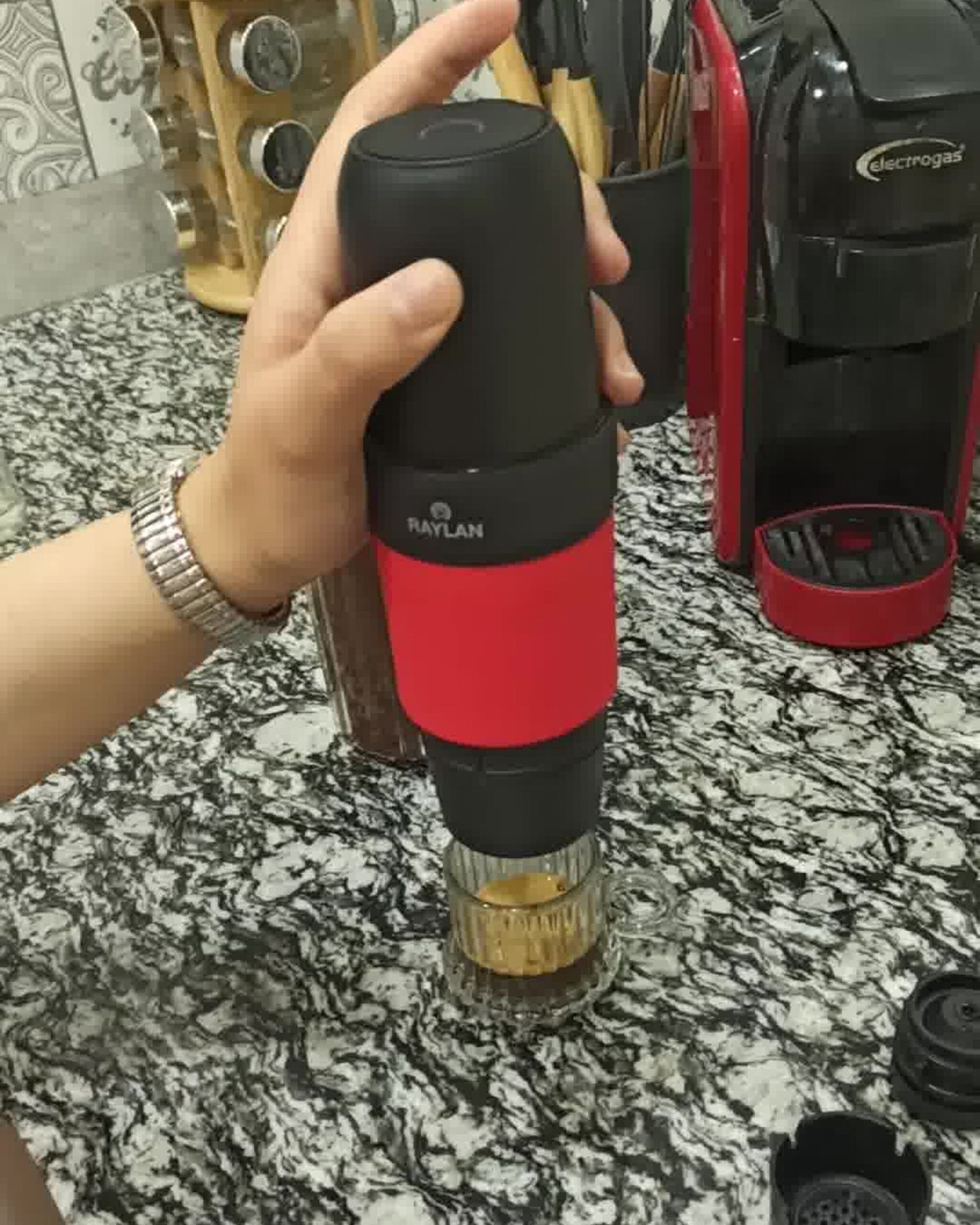 ألة صنع قهوة كهربائية محمولة عالية الجودة صغيرة تديها معاك فالصاكوشة للخدمة ولا تحطها فالطونوبيل و تعصرلك قهوة بيان سيري بمضخة 15بار و اتهنى مالقهواجي و حافظ على صحتك 💯 تعصر القهوة المرحية و كبسولات إسبريسو ☕️ تتشارجا و تقدر بالباتري تاعها تعصرلك من 40 ل 50 قهوة بكل سهولة واحترافية في تواني معدودة ⏰️ وفيها عامين ضمان