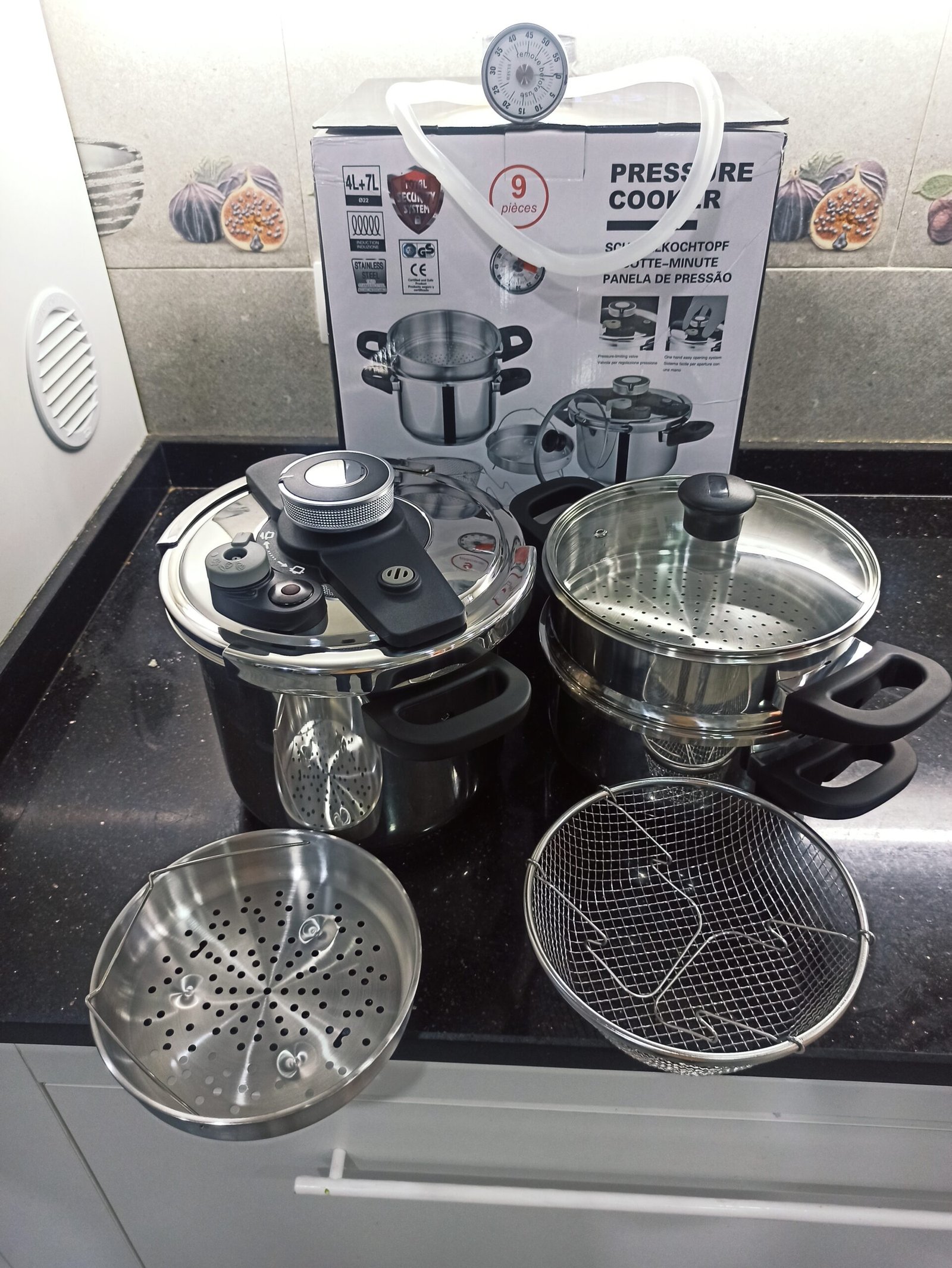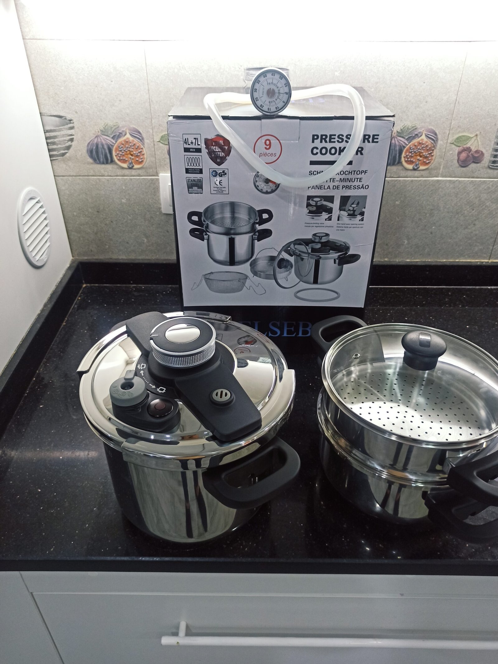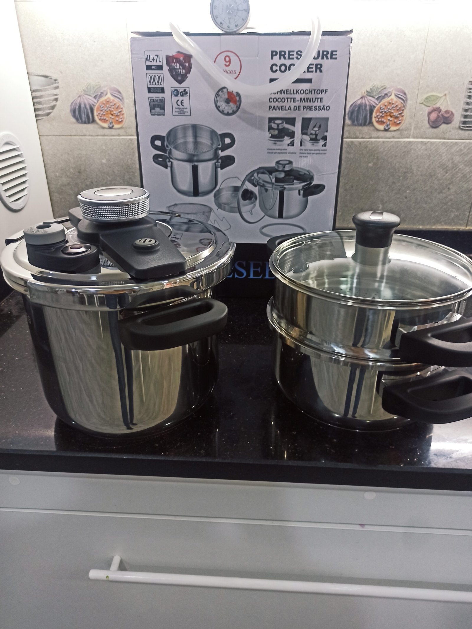 سهلة الغلق والفتح / 3 أنظمة أمان / 3 مستويات ضغط لنتائج طهي دقيقة / متوافقة مع جميع أنواع المواقد / كل قطع الغيار متوفرة (اليدين . الصفارة . الجوا)️