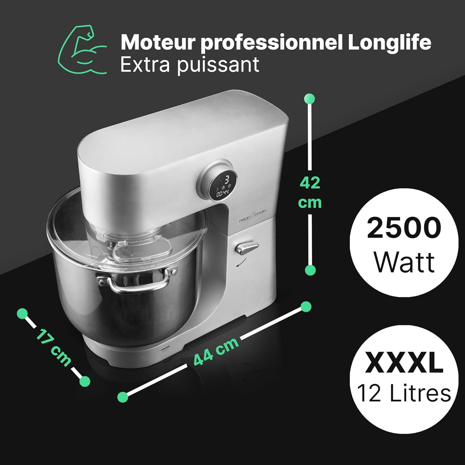 ✔️Le moteur Longlife Pro de 2500W du pétrin offre des performances impressionnantes pour une préparation rapide et efficace des aliments