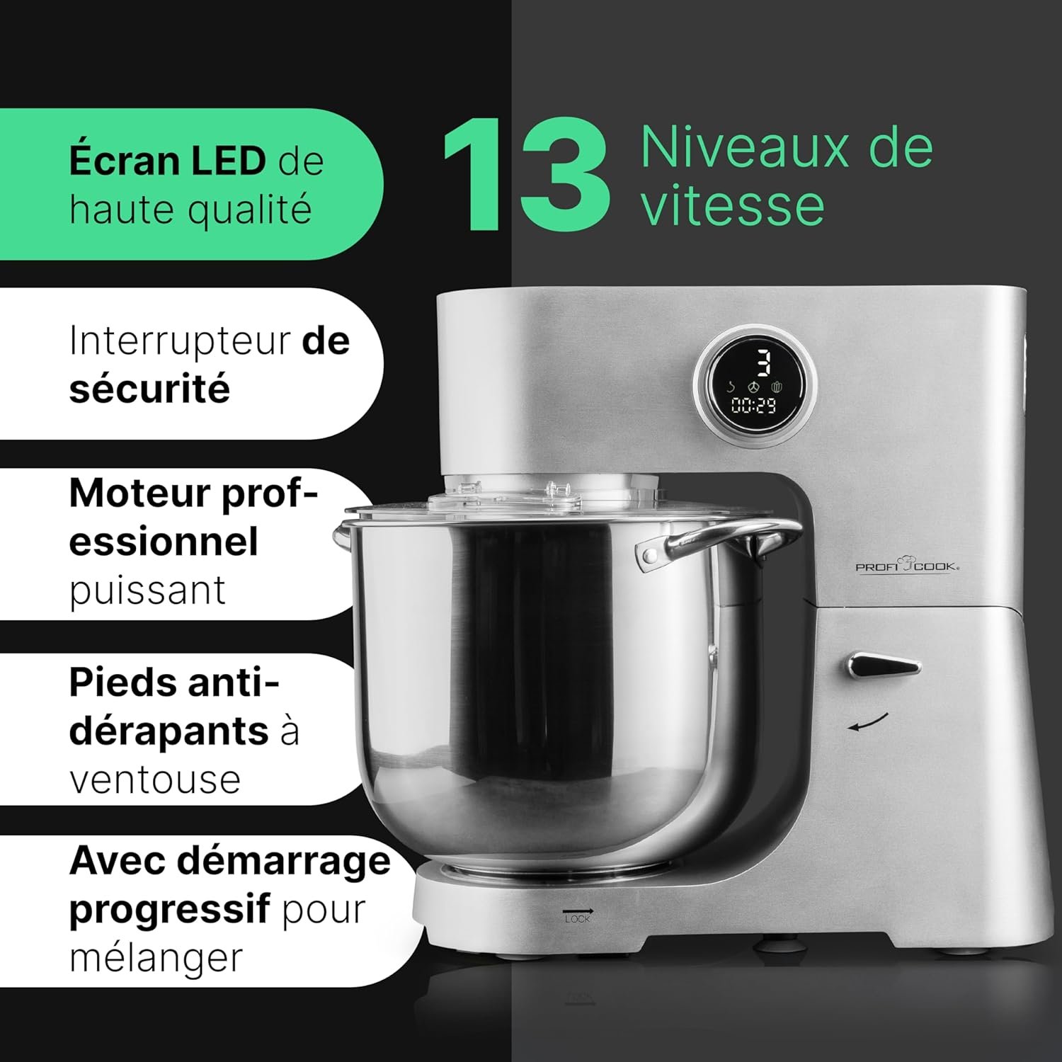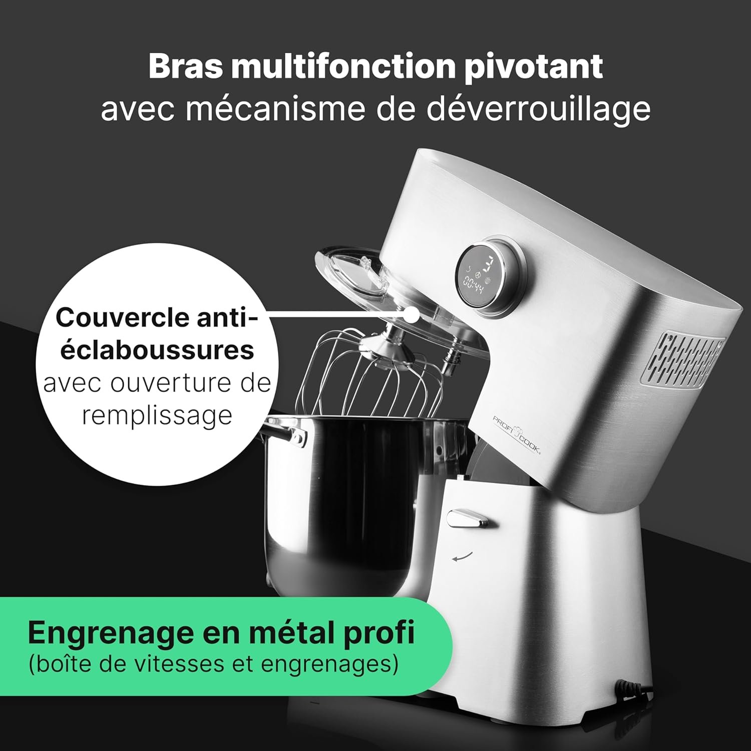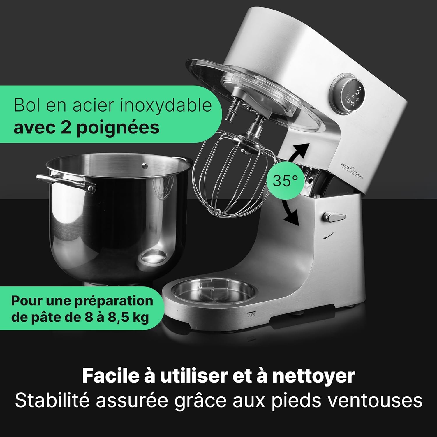 ✔️Avec 12 niveaux de vitesse et des crochets spéciaux pour différentes pâtes, le pétrin XXL ProfiCook est votre aide de cuisine polyvalente