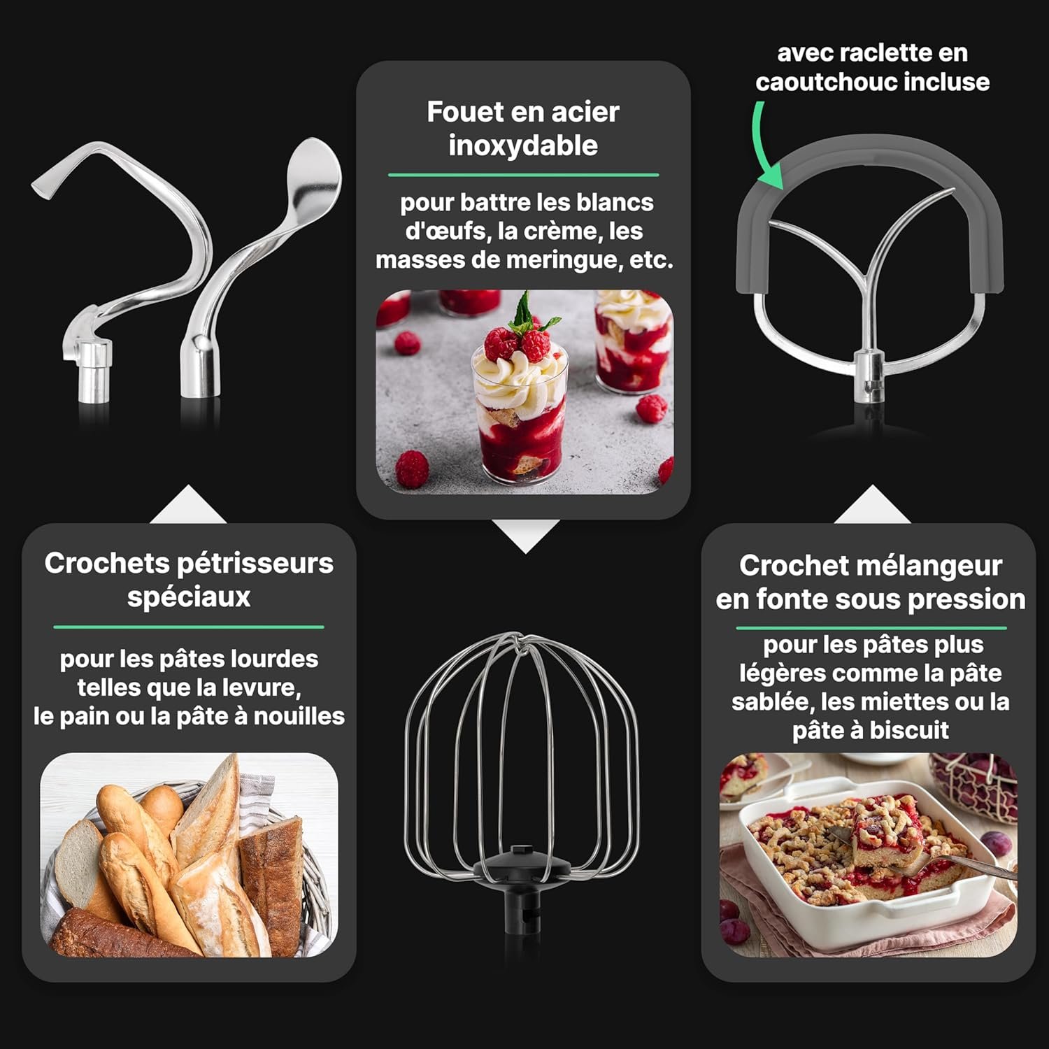 ✔️Le boîtier robuste en fonte d’aluminium et la boîte de vitesses en métal durable garantissent professionnalisme et longévité dans votre cuisine